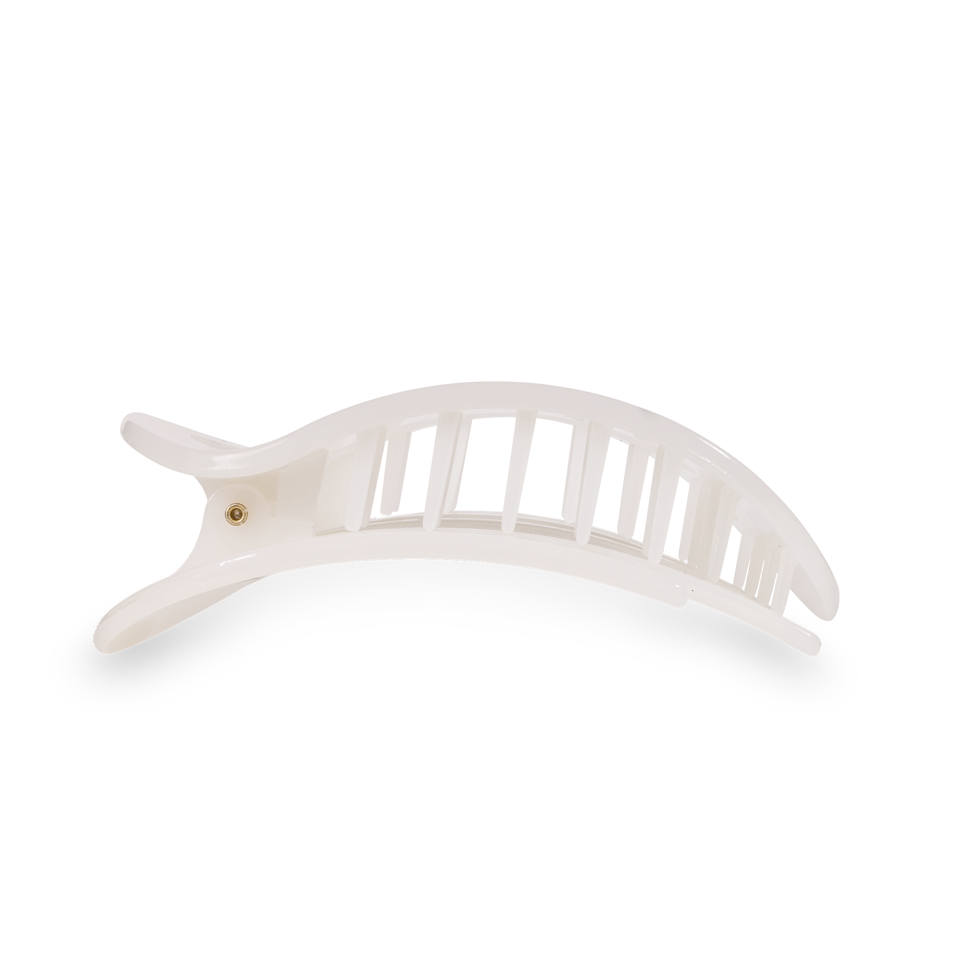 Lay flat and relax with the new TELETIES Coconut White Small Flat Round Hair Clip in White. This hair clip is designed to allow you to lay back flat, do yoga, or sit comfortably in a seat with a headrest, and it is made with the same material that is nearly unbreakable.